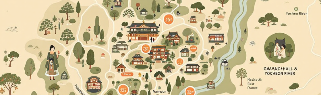 - 요천변 버드나무길 – 이몽룡과 춘향의 만남 장면을 재현한 조형물과 벤치, 산책코스가 어우러진 감성 장소.
